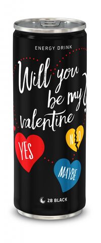 Wer am Valentinstag ein Herz erobern will, doch noch nicht so richtig weiß, wie er es angehen soll, der bekommt in diesem Jahr Unterstützung von Energy Drink 28 BLACK. Die alles entscheidende Frage „Will you be my valentine?“ wurde zum Thema der 28 BLACK Valentins-Edition gemacht. Und damit der oder die Auserwählte vor Aufregung oder Verlegenheit nicht ins Stottern gerät, sind die passenden Antwortmöglichkeiten gleich mit auf der Dose. Heartbreaker, Date-Maker – mit den 28 BLACK Valentins-Dosen sollte am 14. Februar nichts schief gehen.